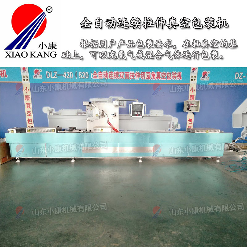 全自動連續(xù)真空包裝機(jī)是一臺大型真空包裝機(jī),其工作產(chǎn)能也是其它半自動真空包裝機(jī)所不能達(dá)到的,它在整個生產(chǎn)過程上相當(dāng)于一條生產(chǎn)流水線,拉伸膜真空包裝機(jī)集薄膜拉伸、成型、抽真空、分切、成品輸出多個工作環(huán)節(jié)于一身在一臺設(shè)備上完成,而這整個工作過程是由全自動連續(xù)真空包裝機(jī)自動化完成的。