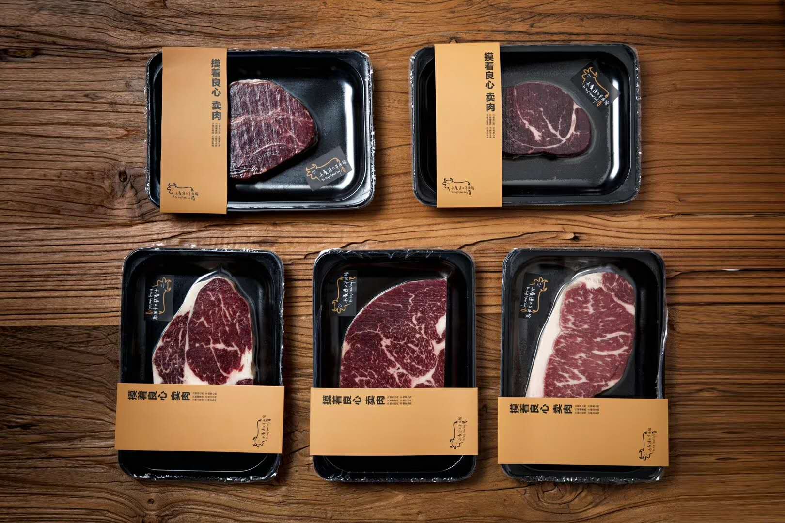 在鄭州一家賣場中,貼體包裝的牛肉產品疊加成扇形、花瓣形或一字排開,紅白花紋的牛肉在金色紙板的映襯下,就像一盤盤展示中的藝術菜品,陳列出了一道亮麗的風景線。此外,金色紙板上印有品牌名稱,展示商品的同時也宣傳了品牌。